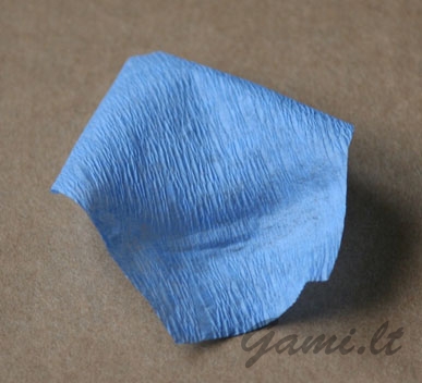 Pradedamas formuoti gėlės žiedas. Imama vidurio detalė ir maždaug per vidurį (labiau į apatinę detalės pusę) krepinis popierius patempiamas.